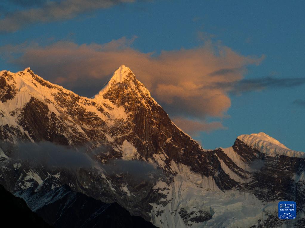 夕陽(yáng)下的加拉白壘峰(11月28日攝,無(wú)人機(jī)照片)。新華社發(fā)(董志雄 攝)