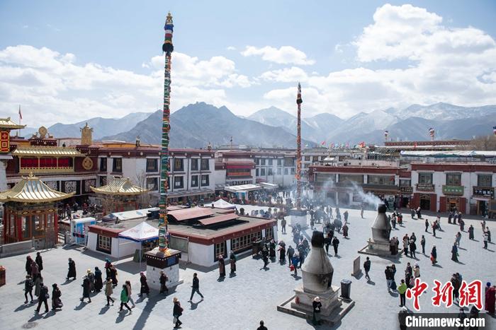 3月14日,八廓街人流如織。 中新社記者 貢嘎來松 攝