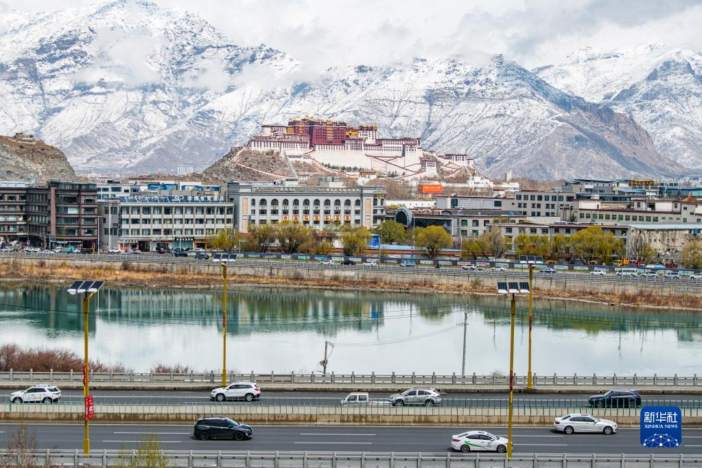 從拉魯濕地拍攝的雪后布達(dá)拉宮(3月30日攝)。新華社記者 晉美多吉 攝