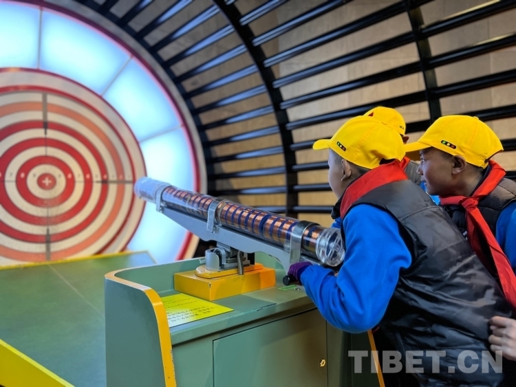 在講解員的帶領(lǐng)下學(xué)生們來到科技館,這里包括藏地智慧、科技樂園、科技前沿、體驗世界屋脊等4個主題展區(qū),主要展示古老的西藏科技智慧、人類取得的科技成就及基礎(chǔ)科學(xué)知識、科技促進(jìn)人類的發(fā)展及西藏的開發(fā)建設(shè)、西藏高原生存環(huán)境的內(nèi)容。