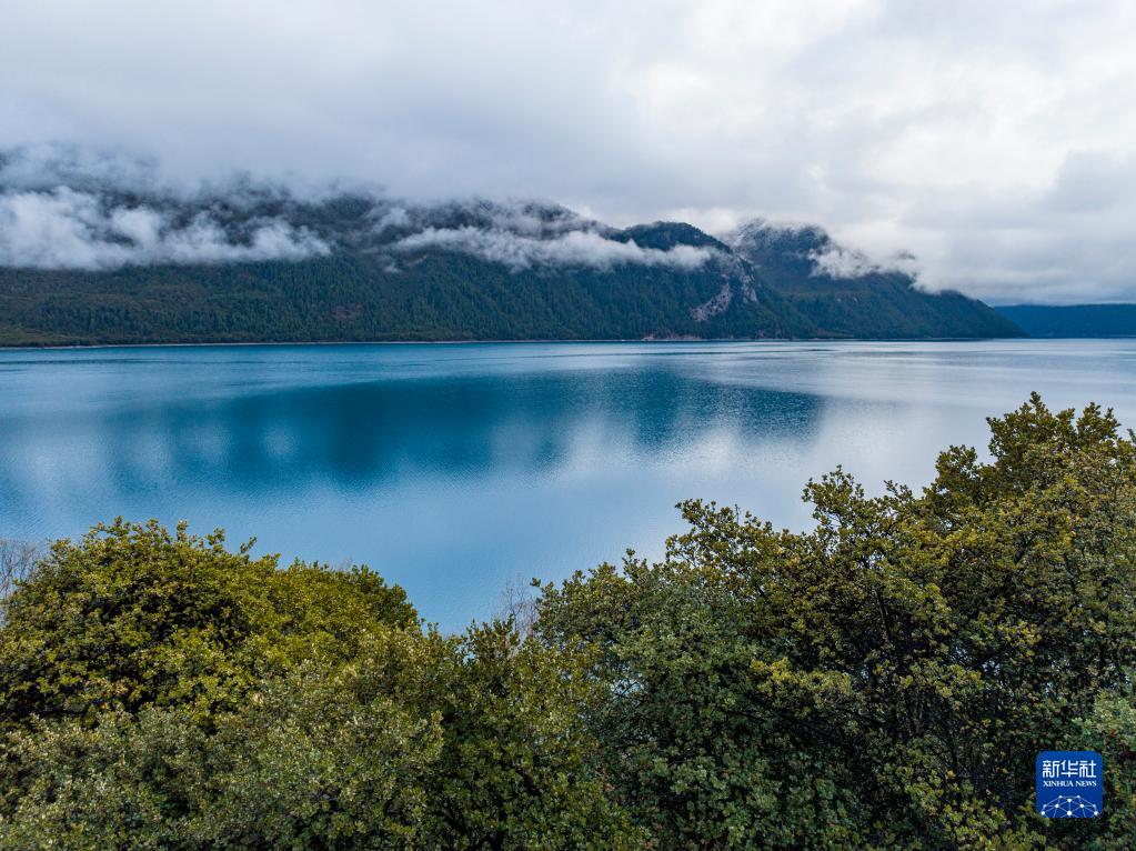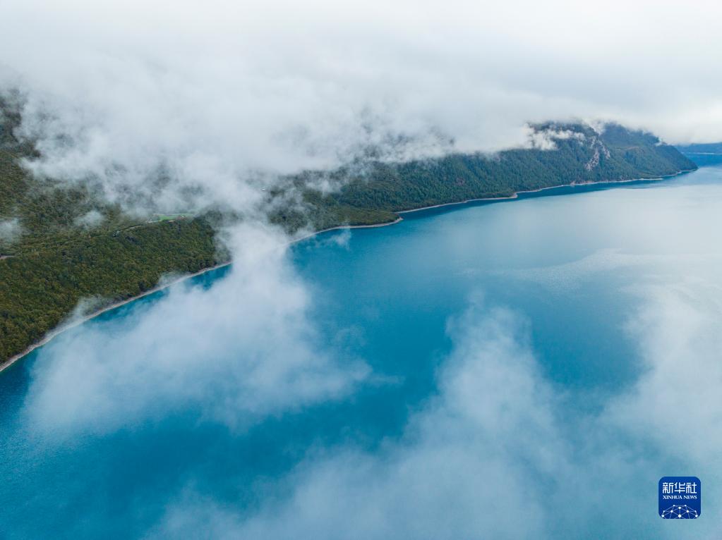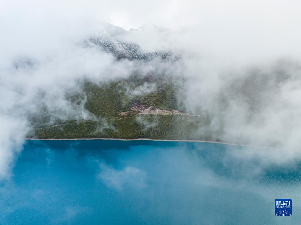 4月17日拍攝的巴松措(無人機照片)。新華社記者 曹檳 攝