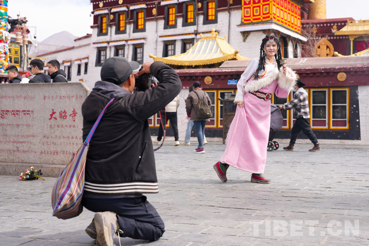 圖為2023年2月“冬游西藏”活動(dòng)期間在大昭寺廣場(chǎng)前打卡的游客 攝影:趙振宇