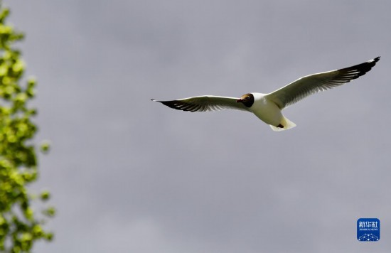 棕頭鷗在拉魯濕地上空盤(pán)旋(5月6日攝)。新華社記者 張汝鋒 攝