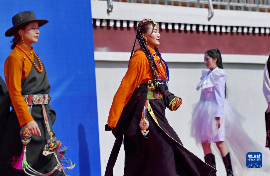 5月10日,西藏技師學(xué)院學(xué)生進(jìn)行傳統(tǒng)服飾表演。新華社記者 張汝鋒 攝