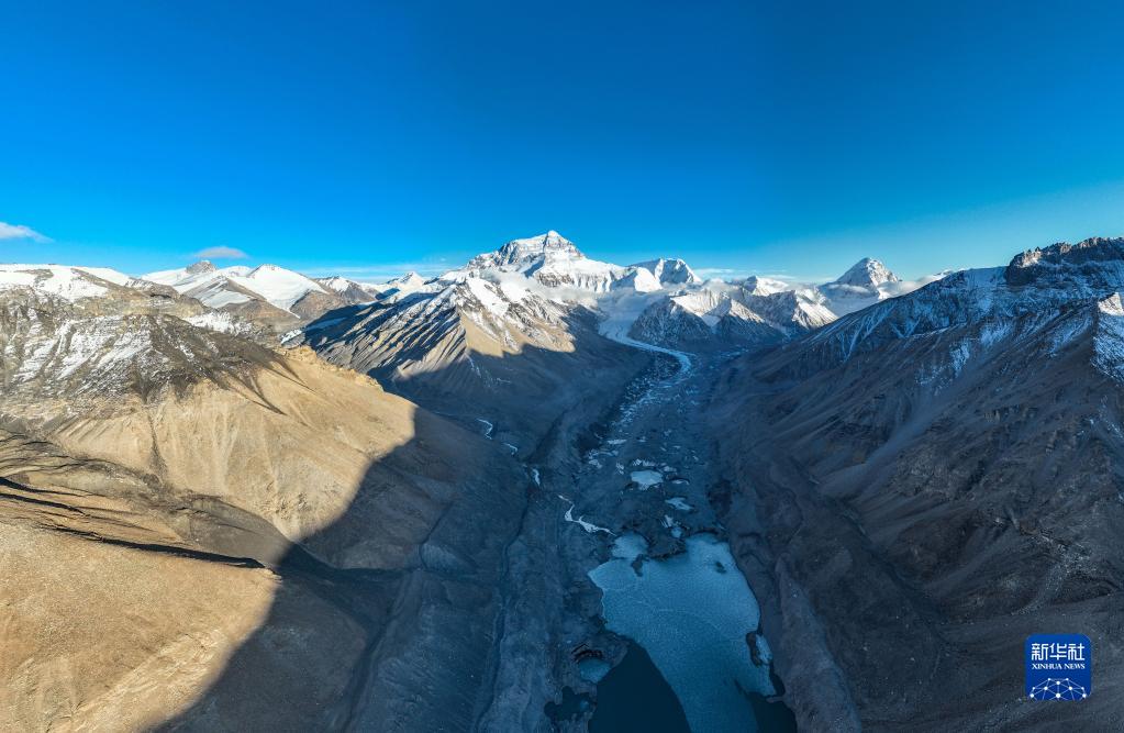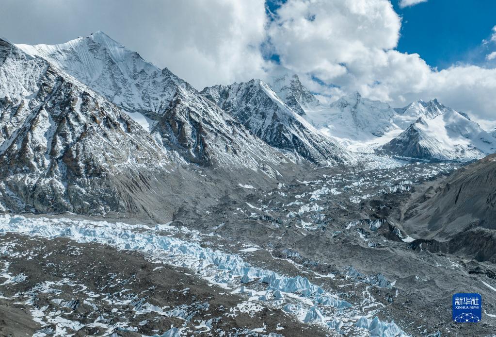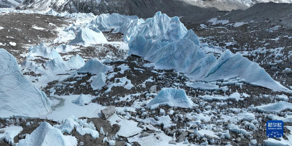 這是珠峰腳下的中絨布冰川(5月15日攝,無人機照片)。新華社記者 孫非 攝