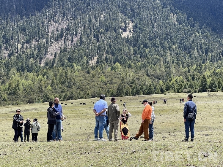 圖為5月17日參訪團(tuán)成員來到魯朗鎮(zhèn)扎西崗村 攝影:德吉卓瑪
