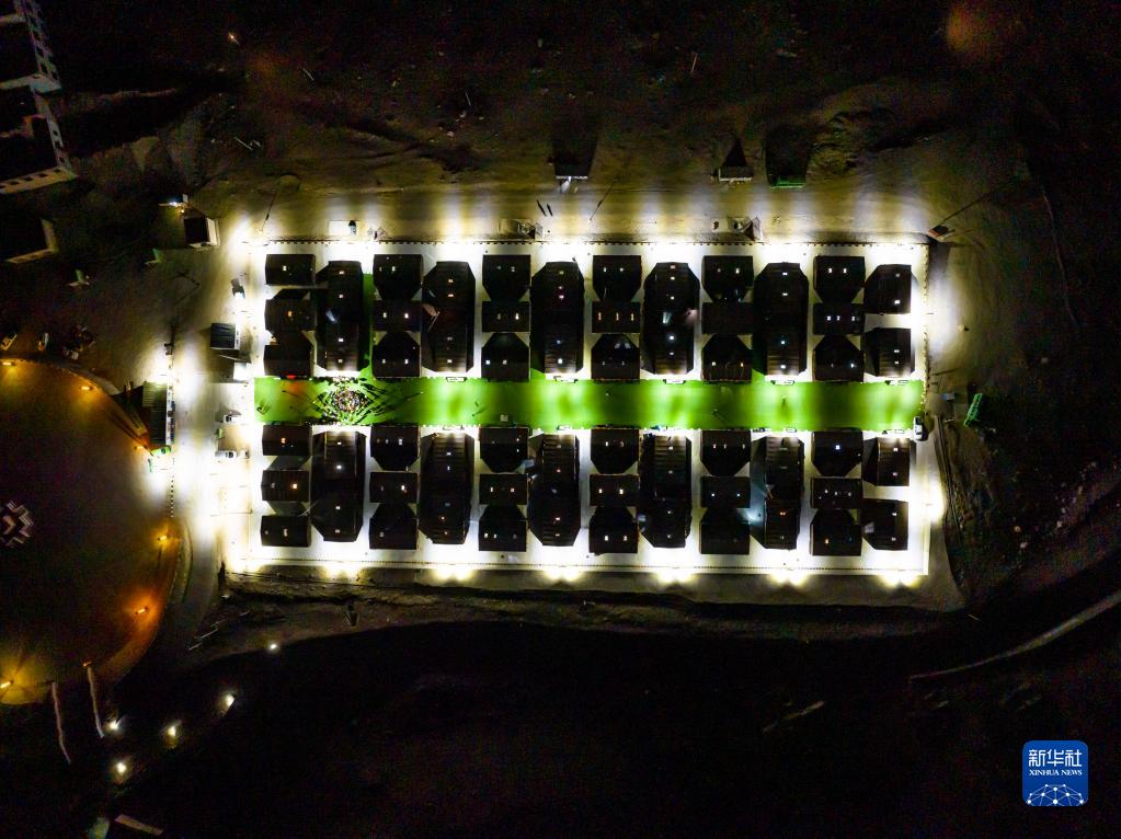 這是夜晚的珠峰游客大本營(yíng)帳篷旅館(5月16日攝,無人機(jī)照片)。新華社記者 孫非 攝