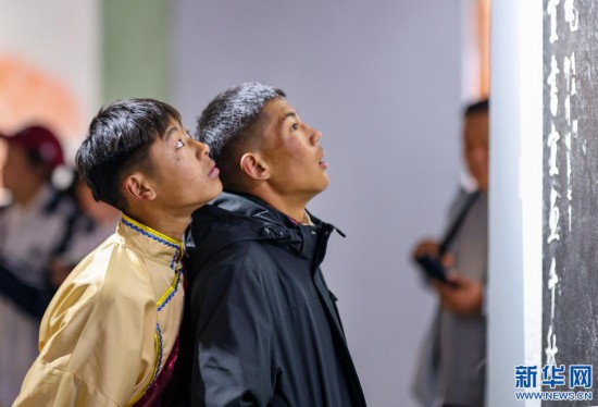 兩名中學(xué)生在西藏牦牛博物館參觀《黃庭堅(jiān)書(shū)法文獻(xiàn)展》(5月18日攝)。新華社記者 姜帆 攝