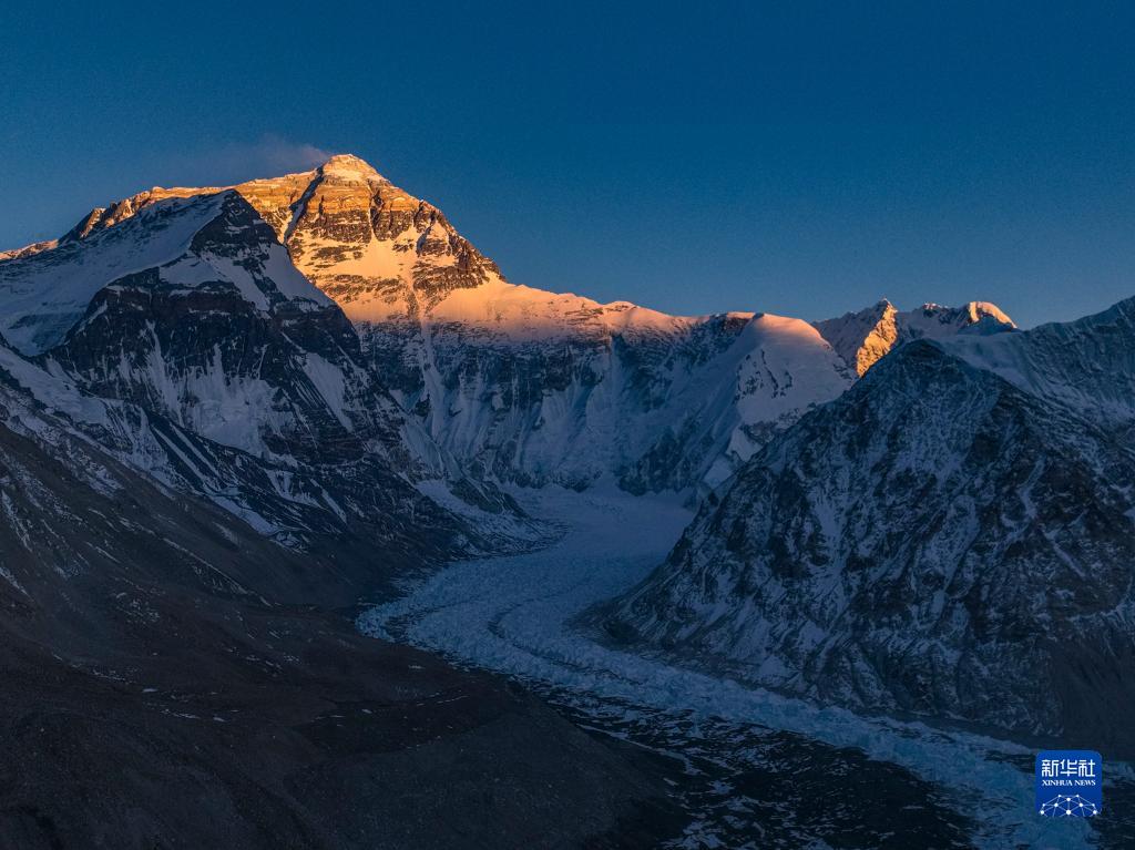 這是5月16日日落時(shí)分拍攝的珠穆朗瑪峰(無(wú)人機(jī)照片)。新華社記者 晉美多吉 攝