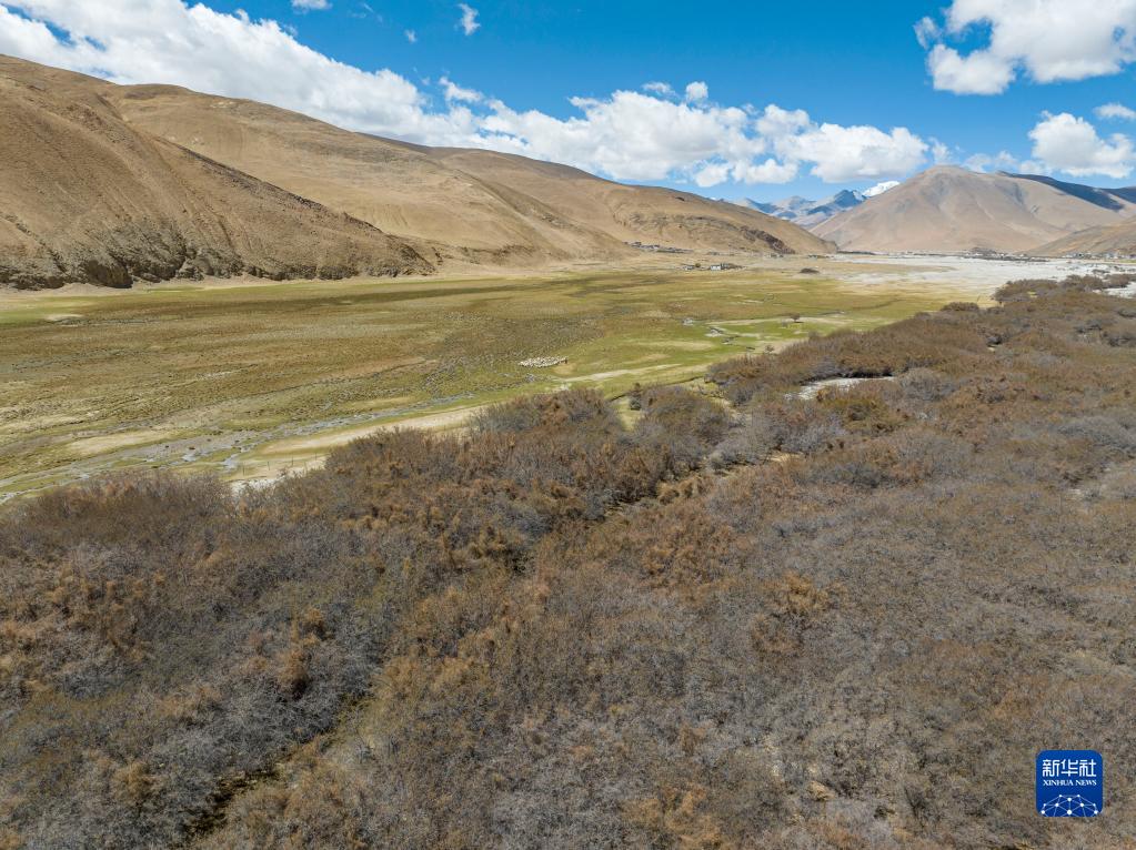 這是在珠峰國(guó)家級(jí)自然保護(hù)區(qū)內(nèi)拍攝的沙棘林和濕地(5月25日攝,無人機(jī)照片)。新華社記者 孫非 攝