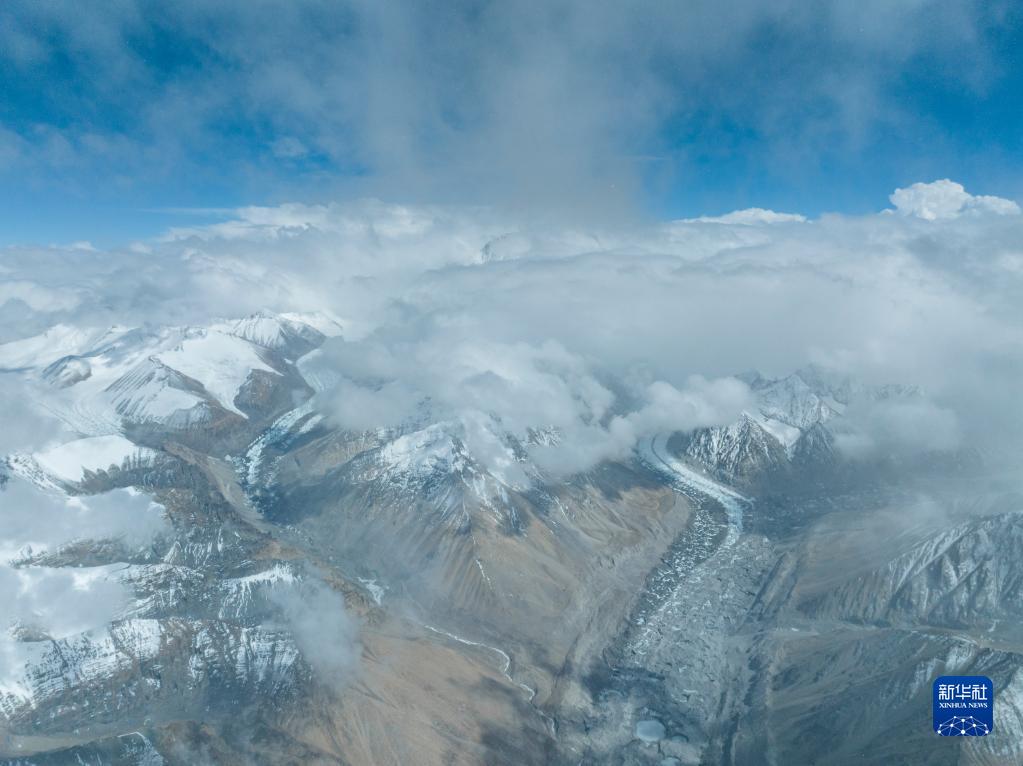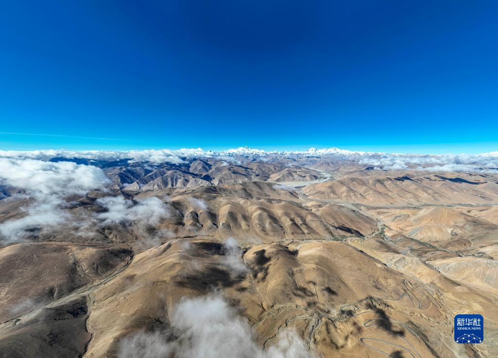 這是在海拔8000米左右高空拍攝的喜馬拉雅山脈群山(5月23日攝,無人機照片)。新華社記者 洛卓嘉措 攝