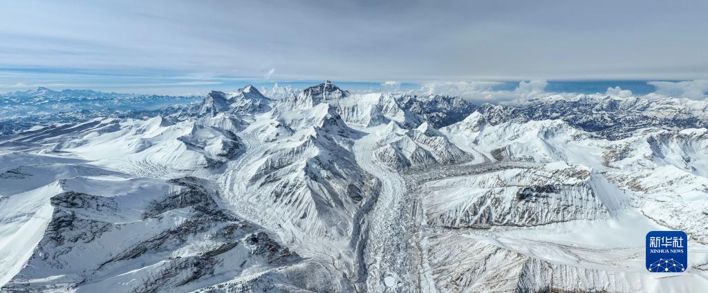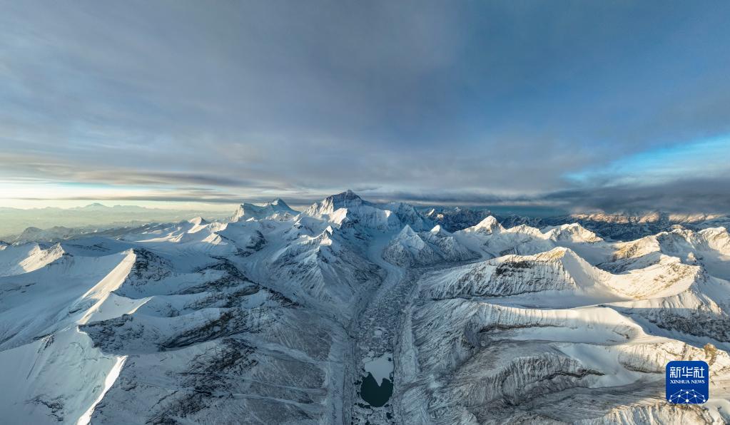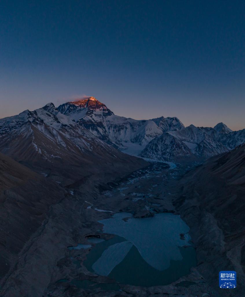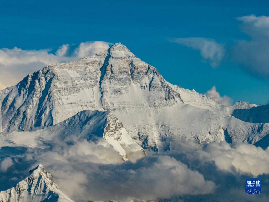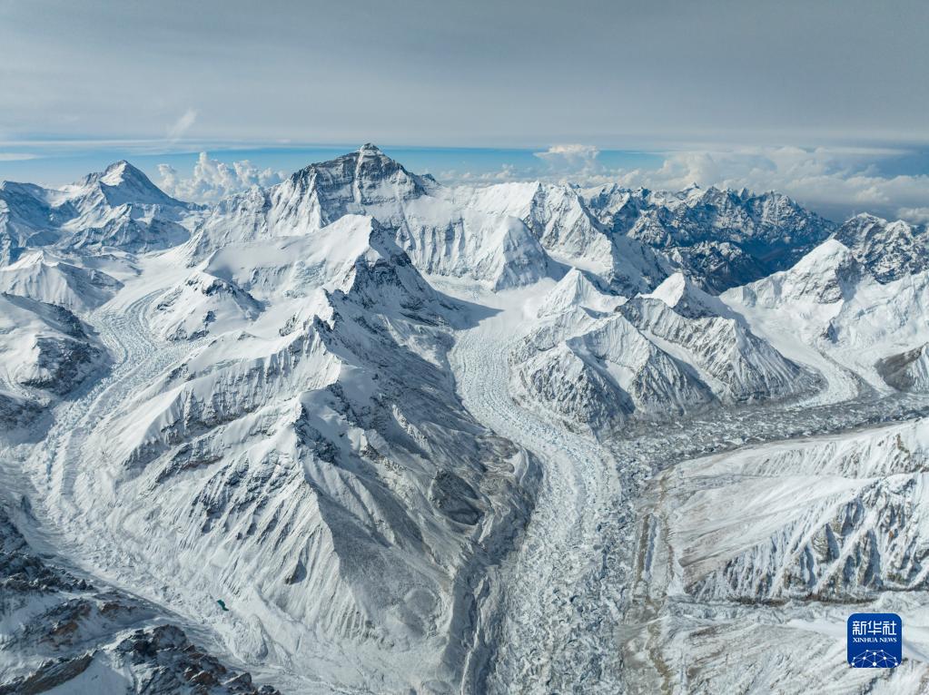 這是在海拔5700米左右空中拍攝的珠穆朗瑪峰(5月11日攝,無人機照片)。新華社記者 孫非 攝