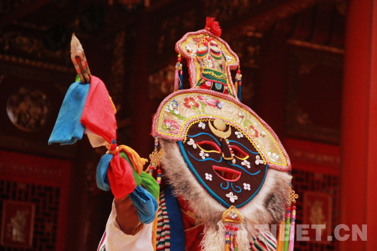 圖為拉薩市城關(guān)區(qū)娘熱民間藝術(shù)團(tuán)演員表演國(guó)家級(jí)非物質(zhì)文化遺產(chǎn)“堆諧”攝影:劉莉