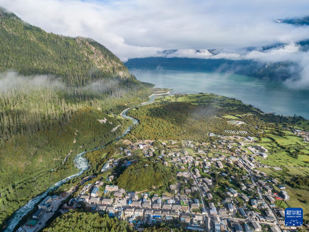這是7月20日拍攝的西藏林芝市工布江達(dá)縣錯高鄉(xiāng)結(jié)巴村景色(無人機(jī)照片)。新華社記者 孫非 攝