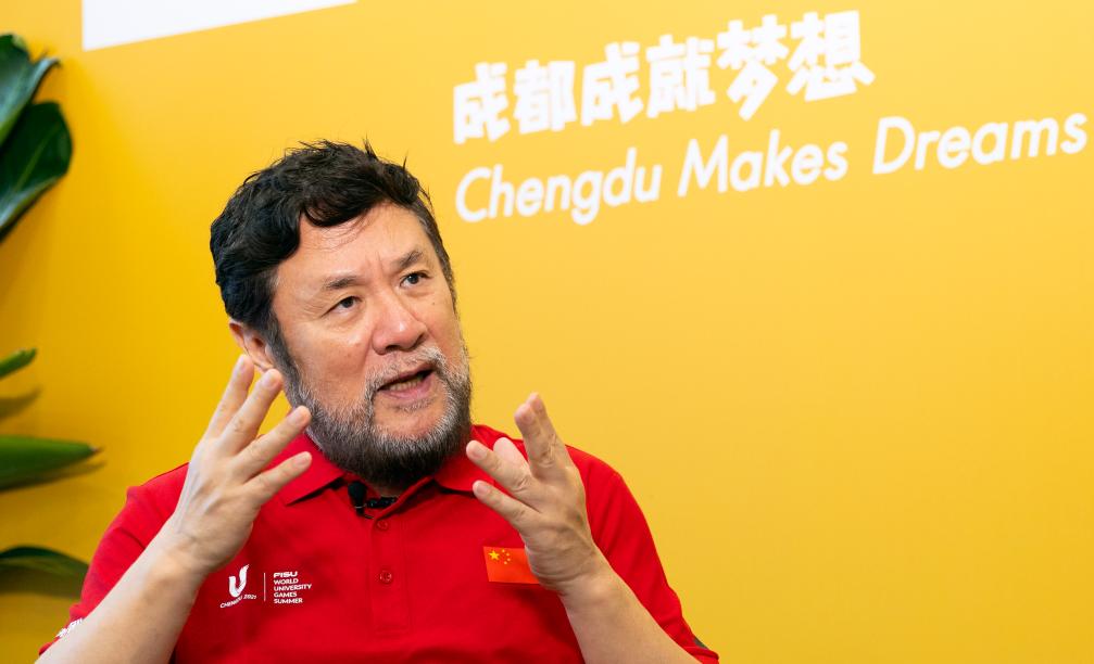 這是7月13日拍攝的成都第31屆世界大學(xué)生夏季運(yùn)動(dòng)會(huì)開幕式總導(dǎo)演陳維亞在接受采訪。 新華社記者 沈伯韓 攝