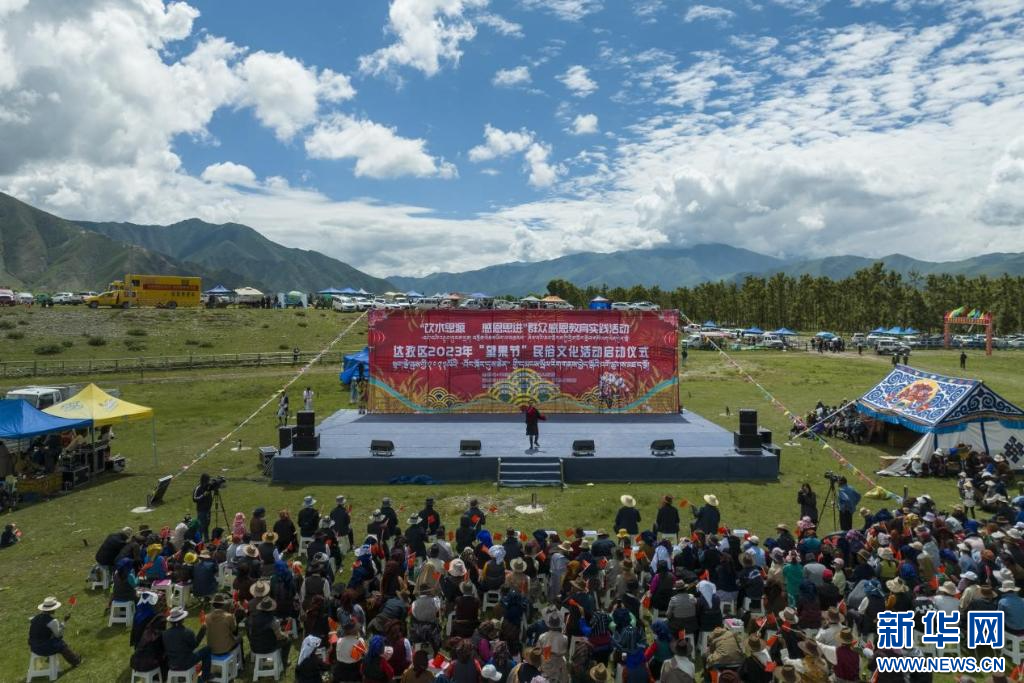 圖為達孜區(qū)2023年“望果節(jié)”民俗文化活動啟動儀式現(xiàn)場(7月28日攝)。新華網(wǎng)發(fā) 司秦菱 攝
