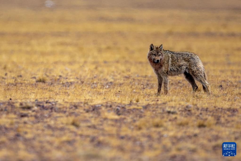 這是在西藏那曲市尼瑪縣境內(nèi)的羌塘國家級(jí)自然保護(hù)區(qū)核心區(qū)拍攝的狼(5月10日攝)。新華社記者 姜帆 攝 ??