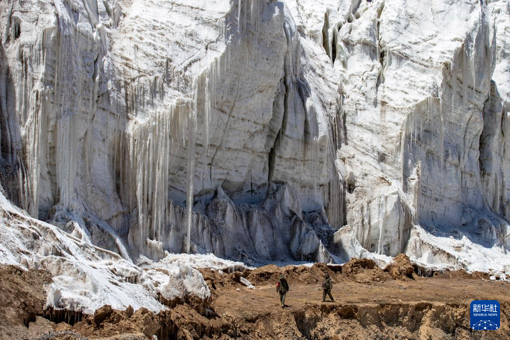 ??野生動(dòng)物專(zhuān)業(yè)管護(hù)隊(duì)員在無(wú)人區(qū)深處的藏色崗日冰川巡查(5月11日攝)。新華社記者 姜帆 攝