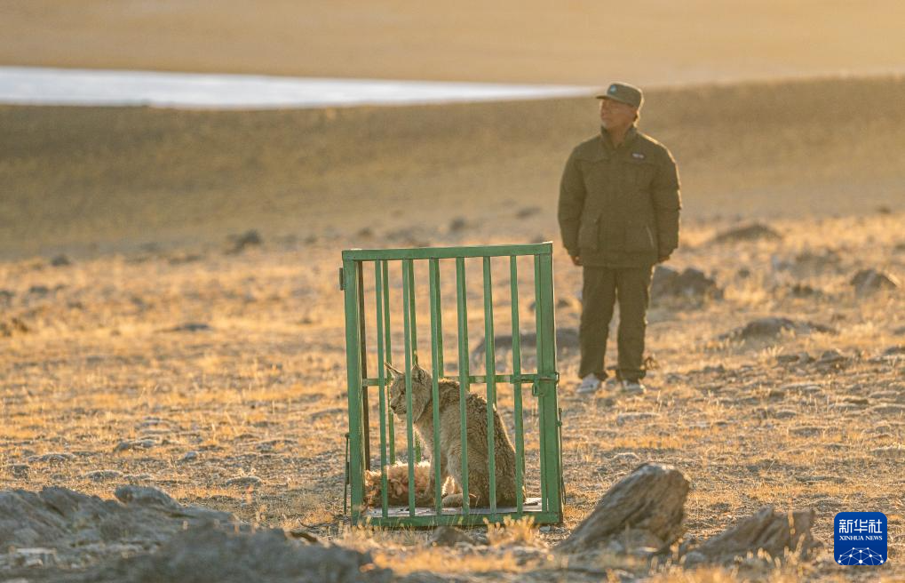 ??野生動(dòng)物專(zhuān)業(yè)管護(hù)隊(duì)員準(zhǔn)備將一頭猞猁放歸自然(5月12日攝)。新華社記者 丁增尼達(dá) 攝