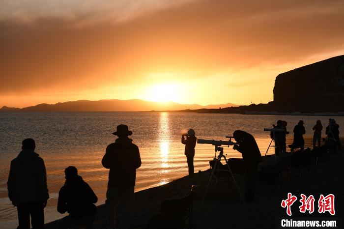 體驗(yàn)結(jié)束后,邀請(qǐng)嘉賓就座開(kāi)始觀測(cè)星空,由西藏天文歷算有關(guān)專家簡(jiǎn)要為游客講解天文歷算及星空觀象相關(guān)知識(shí)。現(xiàn)場(chǎng)擺放10臺(tái)星空觀測(cè)設(shè)備,供現(xiàn)場(chǎng)游客自行觀察納木錯(cuò)的星空。