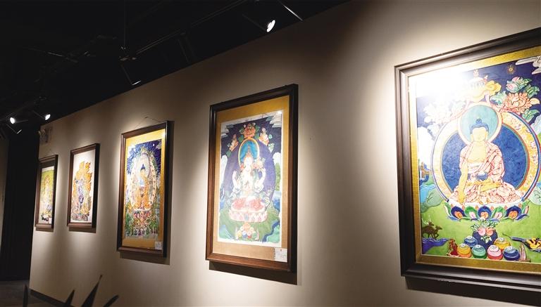 西藏大學藝術系研究生格桑感嘆:“看到羅布老師的作品,真的能感受到傳承人的不容易,一幅較大的唐卡需要半年乃至一年的時間才能完成,花費的時間、精力和心血是無可比擬的。”