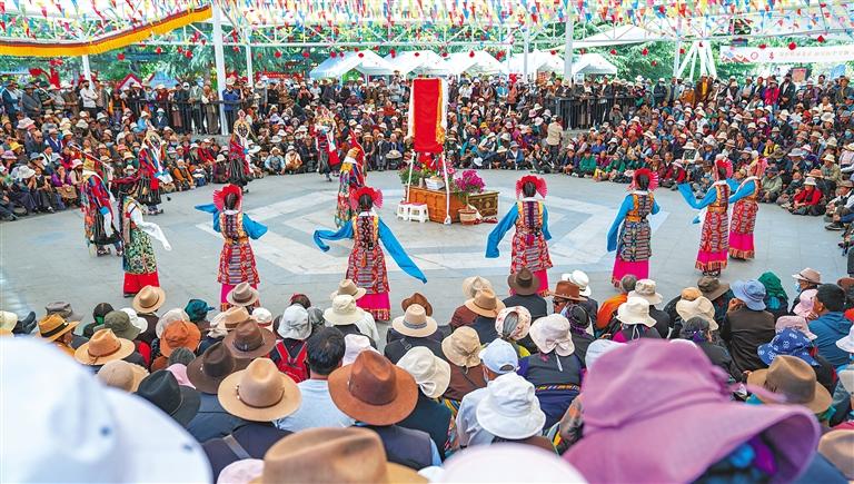 悠悠夏日,氣溫攀升,前往拉薩市宗角祿康公園消夏游玩成為不少市民和游客的選擇。6月9日,由拉薩市文化局主辦的2024年“藏戲演出季”活動(dòng)在宗角祿康公園啟動(dòng)?;顒?dòng)為期5天,來自拉薩市各縣(區(qū))的5支民間藏戲團(tuán)隊(duì)將精彩呈現(xiàn)《朗薩雯蚌》《卓娃桑姆》等經(jīng)典傳統(tǒng)劇目。此外,活動(dòng)現(xiàn)場(chǎng)搭建了購(gòu)買非遺產(chǎn)品的優(yōu)質(zhì)平臺(tái)——拉薩非遺好物集市,對(duì)藏香、陶瓷、書法、酸奶、馬具、糌粑、服飾等非遺好物進(jìn)行了展銷。