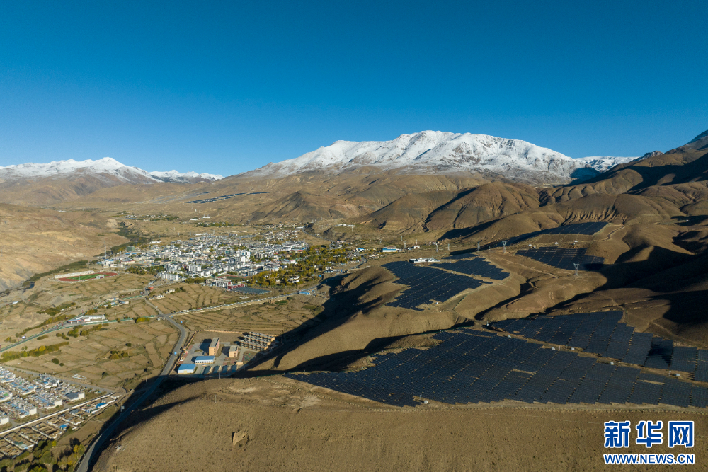 措美縣縣城附近的光伏電站(無(wú)人機(jī)照片)。新華網(wǎng) 旦增努布 攝