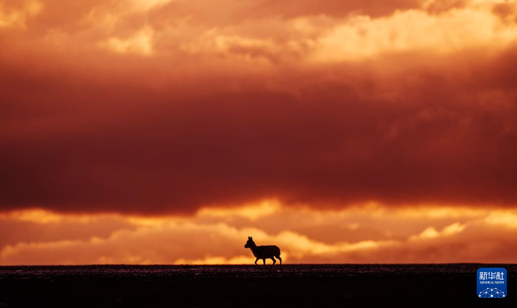 6月13日傍晚在羌塘國家級(jí)自然保護(hù)區(qū)拍攝的一只藏羚羊。新華社記者 費(fèi)茂華 攝