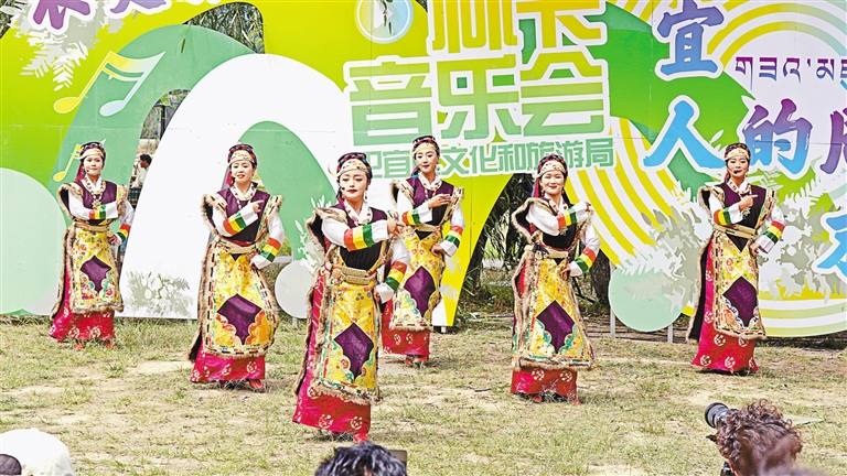 圖為在尼洋河畔濱江公園舉行的林卡主題音樂會(huì)演出現(xiàn)場。