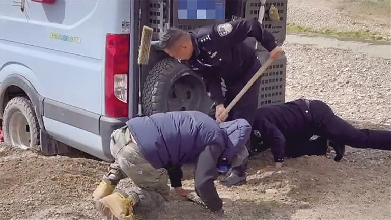 “在最絕望的時(shí)候,我第一時(shí)間想到撥打110。”楊先生撥打報(bào)警電話沒一會(huì)兒,一輛警車趕來,此時(shí)的楊先生,既高興又擔(dān)憂,高興的是終于看到了希望,擔(dān)憂的是害怕受到民警的批評(píng)教育。而令他沒想到的是,兩名民警下車的第一件事不是批評(píng)教育他,而是擼起袖子、拿起鐵鍬,努力挖掘汽車周邊的泥土。