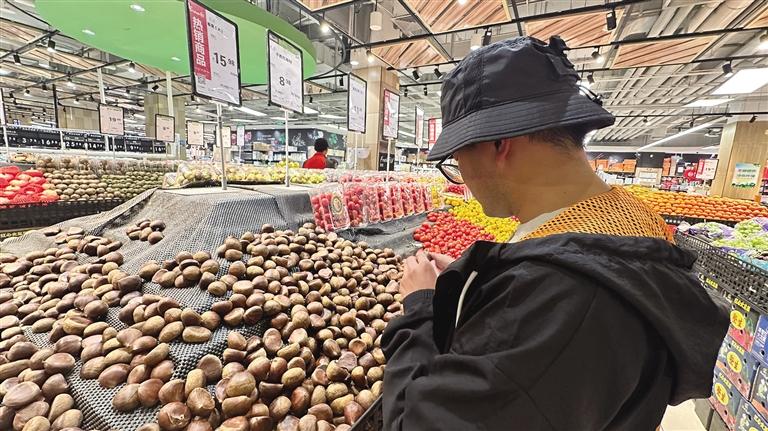 10月10日,記者在拉薩市娘熱路的一家超市看到,一顆顆新鮮的板栗被擺放在貨架上,果形飽滿、光澤誘人,引得不少市民駐足挑選?!懊磕赀@個季節(jié)我都會買一些板栗,不僅因為它們味道好,而且對身體也有好處?!崩_市民張女士告訴記者:“前兩天,我在超市里看到有新鮮板栗賣,價格也不貴,每斤20元左右,這次準備多買一些回去儲存起來。”