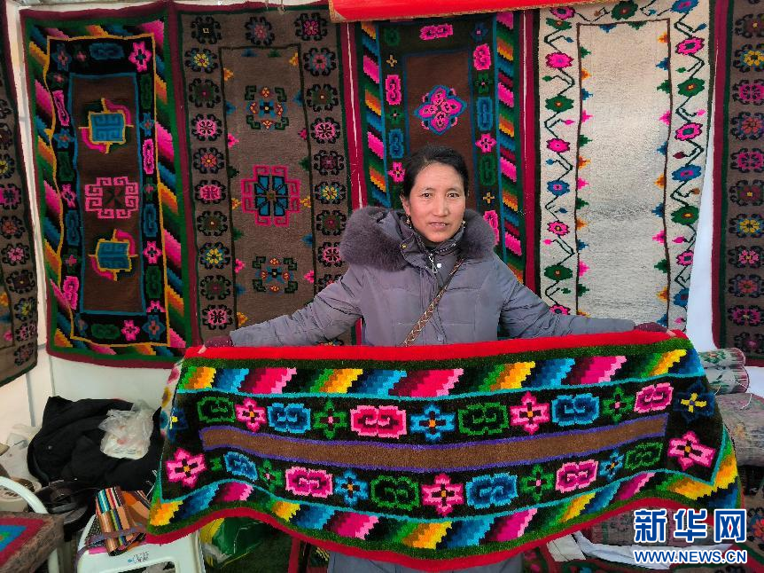 “來(lái)看看我們的卡墊,漂亮的門(mén)當(dāng)卡墊!”商戶(hù)白瑪曲吉正在大聲吆喝。