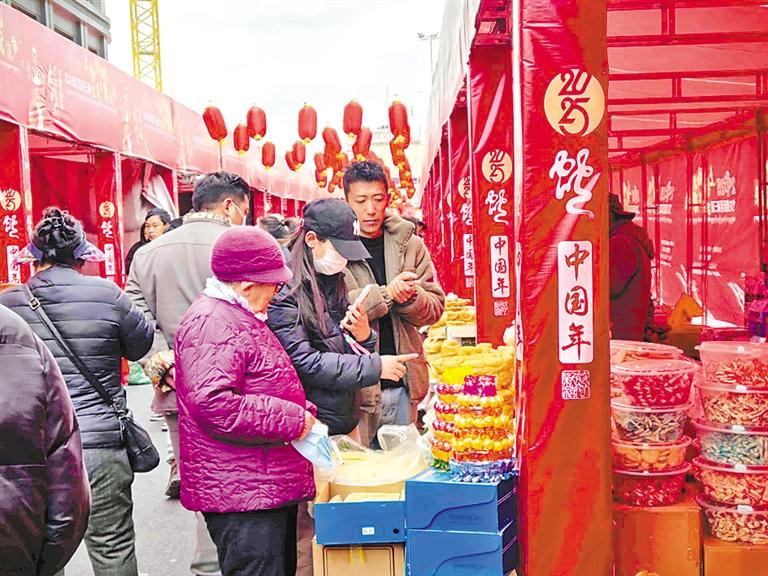 近日,拉薩市堆龍德慶區(qū)第三屆“上谷福地·吉慶年貨集市”開幕。集市上既有堆龍本土企業(yè)和合作社帶來的藏歷新年年貨、農(nóng)畜加工產(chǎn)品、民族手工藝品、傳統(tǒng)服飾,還有來自山南錯(cuò)那市相關(guān)企業(yè)帶來的特色產(chǎn)品。此次活動(dòng)共有118戶商戶參加,商品種類達(dá)百余種。 圖為市民正在購(gòu)買“德嘎”。記者 拉巴桑姆 攝
