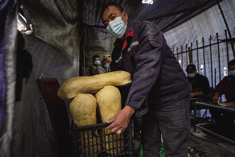 第一塊卡賽不僅炸出了好寓意,也炸出了大家的安心。索朗說:“出鍋的第一塊卡賽如果是顏色均勻靚麗且香酥的話,寓意著今天的卡賽會‘聽話’,炸出來會很好看?!彼骼仕f的“聽話”,其實是油溫始終控制在七成熱狀態(tài),不會炸糊也不會翻涌。