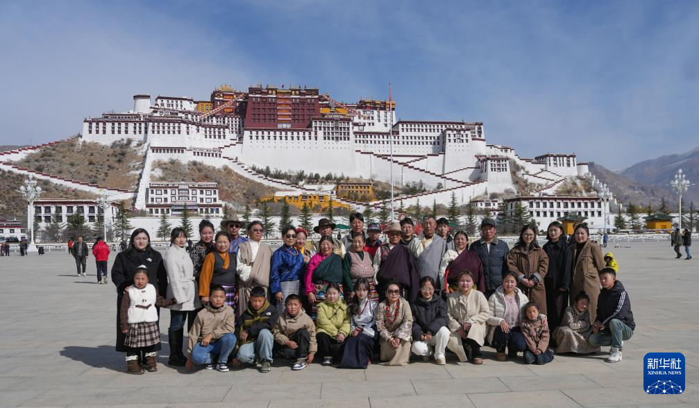 2月28日,來自西藏那曲市比如縣的一家人在拉薩布達(dá)拉宮前合影留念。新華社記者 晉美多吉 攝