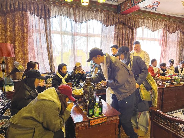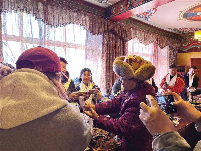 來自東北遼寧的于先生是第一次過藏歷新年,一切都讓他感到新奇不已。他一邊不停地拍照,分享給遠(yuǎn)方的家人,一邊興奮地介紹說:“我不僅品嘗到了美味的藏式佳肴,更深入了解了藏歷新年習(xí)俗,這份跨越文化的溫暖與情誼,將成為我記憶中最珍貴的新年禮物,希望明年還有機(jī)會過藏歷新年?!庇谙壬脑捳Z,道出了許多游客的心聲。在這個特別的新年里,他們收獲的不僅僅是美食與美景,更是一份深厚的文化體驗(yàn)和溫暖的情誼。