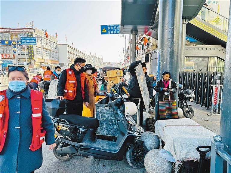 圖沖賽康社區(qū)全體工作人員及駐居工作隊(duì),開(kāi)展非機(jī)動(dòng)車(chē)亂停亂放專(zhuān)項(xiàng)整治行動(dòng)。 記者 央金 攝