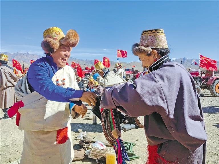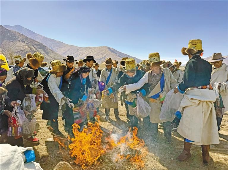 仁布縣群眾撒糌粑祈求風(fēng)調(diào)雨順。