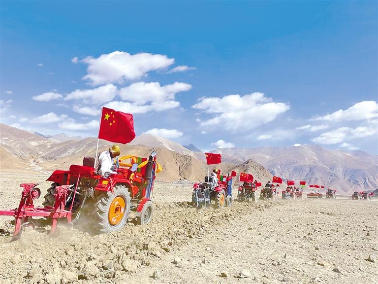 在薩嘎縣旦嘎鄉(xiāng)旦嘎村、薩當(dāng)村,村民們?cè)缭缇奂谔镩g,喝酥油茶、品青稞酒,歡聲笑語中滿是對(duì)新一年豐收的期待。與此同時(shí),現(xiàn)代農(nóng)業(yè)機(jī)械的轟鳴聲回響在田間,勾勒出傳統(tǒng)農(nóng)耕文明與現(xiàn)代農(nóng)業(yè)技術(shù)交融的生動(dòng)圖景。薩當(dāng)村村民次仁多吉感慨地說:“過去,12畝地要全家忙半個(gè)月;如今,有了機(jī)械化助力,僅需3天就能完成。機(jī)械化不僅提高了效率,還解放了勞動(dòng)力。現(xiàn)在,我有更多時(shí)間外出務(wù)工,增加收入。去年,我們家總收入突破10萬元?!钡└锣l(xiāng)農(nóng)牧綜合服務(wù)中心主任旦真介紹,旦嘎鄉(xiāng)早謀劃、早部署,組織農(nóng)牧技術(shù)人員、科技特派員深入各村持續(xù)開展青稞選種、科學(xué)施肥、灌溉等技術(shù)指導(dǎo),確保今年全鄉(xiāng)農(nóng)業(yè)生產(chǎn)能夠順利開局、穩(wěn)步前行。