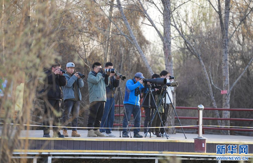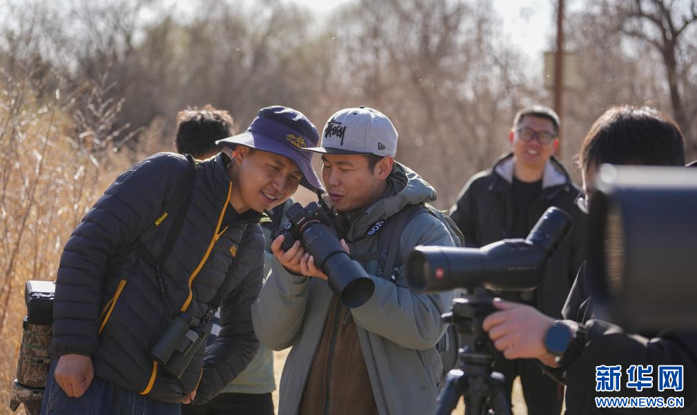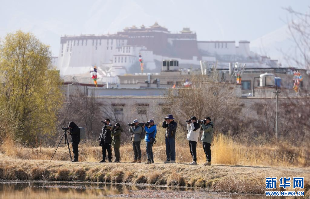 3月29日,參加采風(fēng)活動(dòng)的成員在拉魯濕地觀(guān)鳥(niǎo)拍照。(新華社記者 晉美多吉 攝)