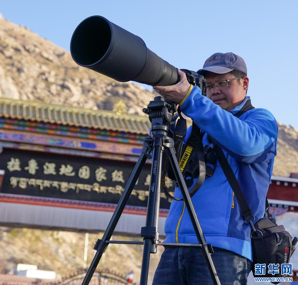 西藏自治區(qū)高原生物學(xué)會(huì)成員楊樂(lè)在拉魯濕地進(jìn)行拍攝。