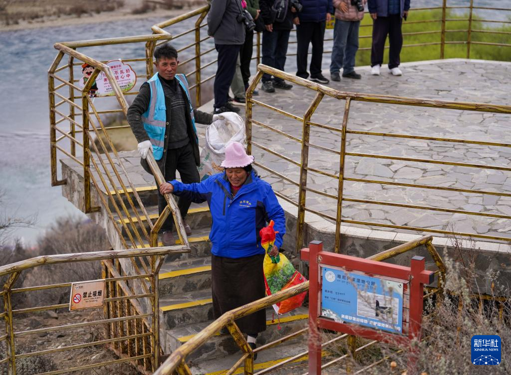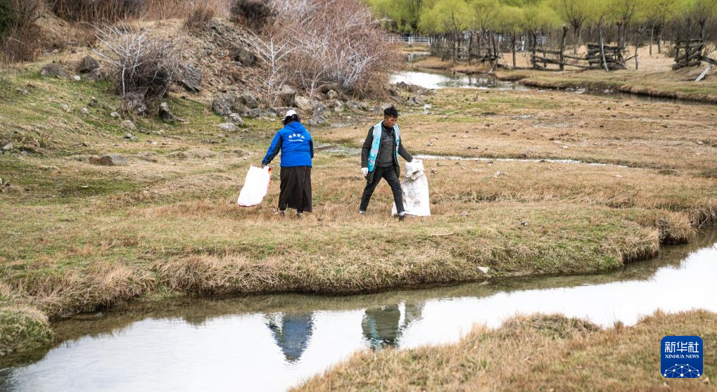 4月4日,雅尼國(guó)家濕地公園管護(hù)員在巡護(hù)途中清理垃圾。新華社記者 丁增尼達(dá) 攝?