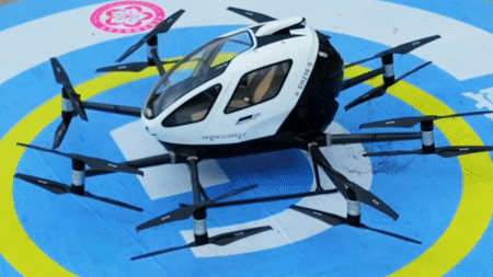 隨著一陣嗡鳴,億航EH216-S無人駕駛載人航空器在林芝市工布公園騰空而起,在空中完成懸停、轉(zhuǎn)向、繞飛等精準動作,吸引了大批游客的目光。據(jù)悉,這是在億航獲得全國首批載人類民用無人駕駛航空器運營合格證后,旗下EH216-S無人駕駛載人航空器首次在海拔3000多米的高原飛行。