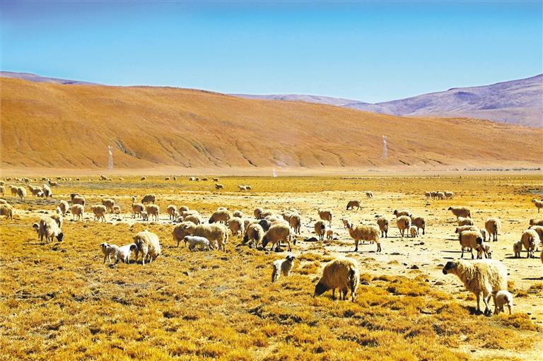 哲古草原上,羊群正悠閑地吃草。牧民旦增懷里抱著一只小羊坐在路邊,輕柔地撫摸著。“這是我們牧民的希望啊。”他的臉上洋溢著收獲的喜悅。