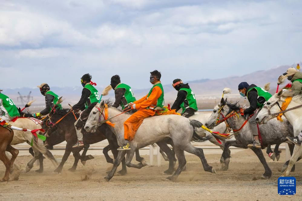 4月27日,騎手在進行比賽。新華社記者 晉美多吉 攝
