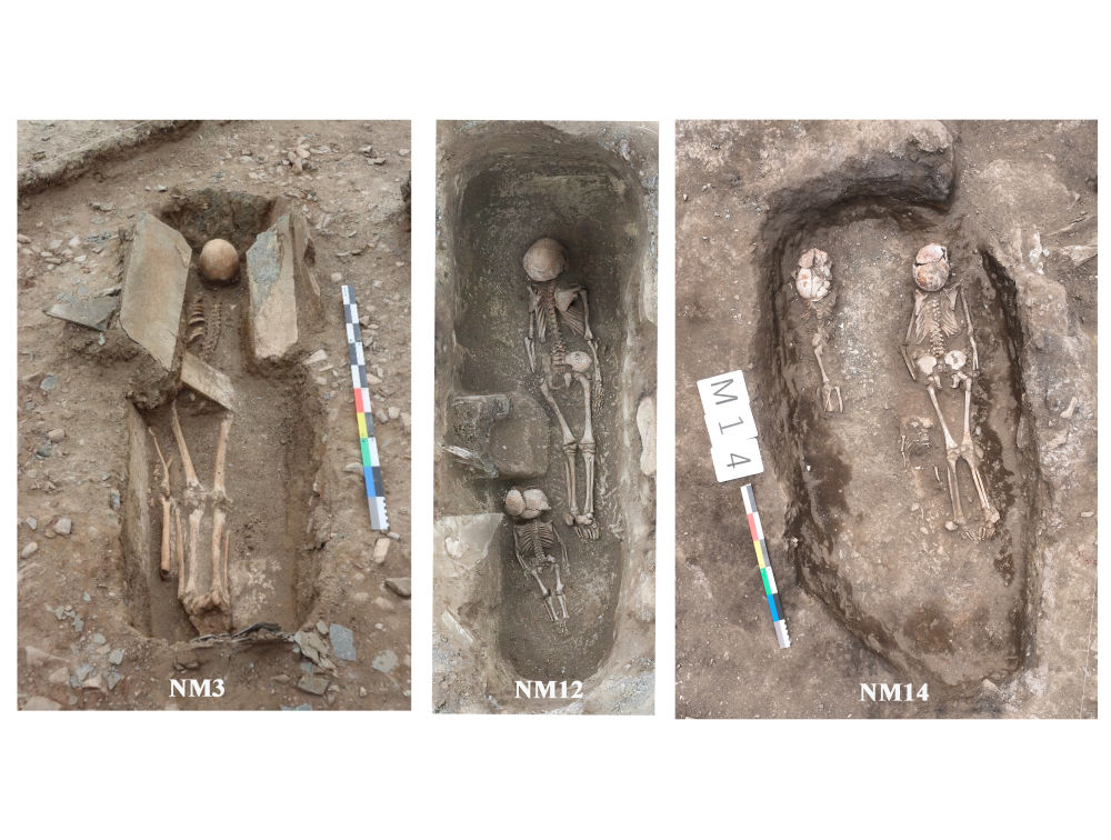 瑪不錯(cuò)第一期遺址(距今4500-4000年)墓葬中俯身直肢石棺墓和土坑墓(資料照片)。新華社發(fā)(西藏自治區(qū)文物保護(hù)研究所供圖)