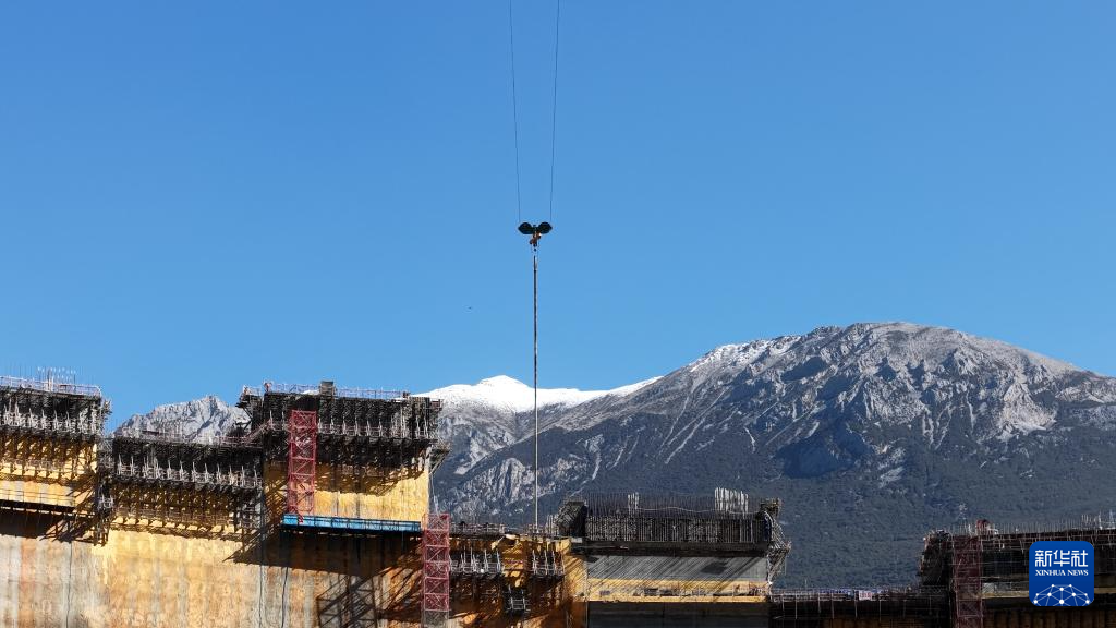 平移式纜機正在吊取葉巴灘水電站大壩芯樣。(受訪單位供圖)