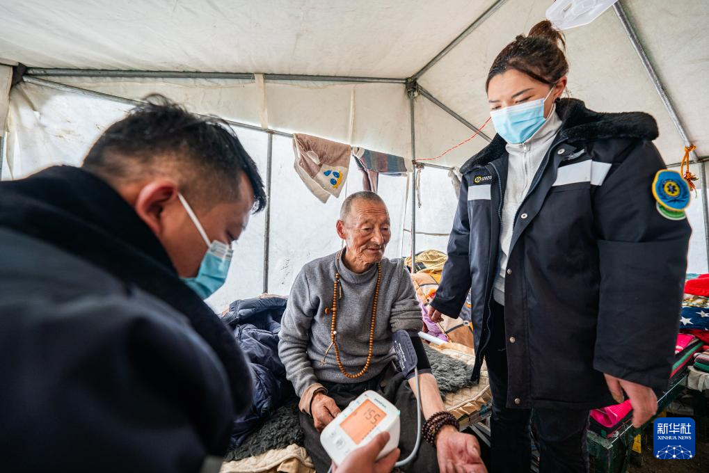 在那曲市索縣西昌鄉(xiāng),衛(wèi)生院醫(yī)務(wù)人員為蟲草采集點(diǎn)的牧民測量血壓(5月18日攝)。新華社記者 丁增尼達(dá) 攝 ??