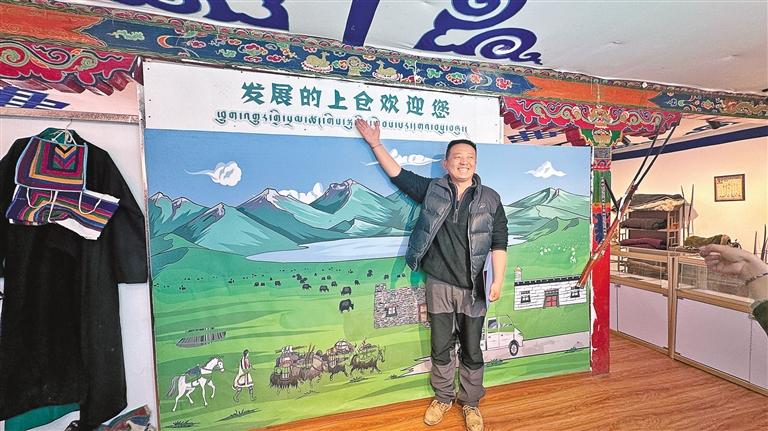 申扎縣卡鄉(xiāng)上倉(cāng)貢瑪村村委會(huì)主任格層曾作為熱心群眾參與到藏北牧人文化館的建設(shè)中。一年前,藏北牧人文化館開(kāi)館時(shí),格層興奮地表示,開(kāi)在村里的文化館不僅能傳承和發(fā)揚(yáng)優(yōu)秀傳統(tǒng)文化,讓人回望歷史、銘記歷史,而且還可以讓更多的人感受到在黨的領(lǐng)導(dǎo)下,西藏老百姓如今過(guò)上的幸福生活是多么的來(lái)之不易。