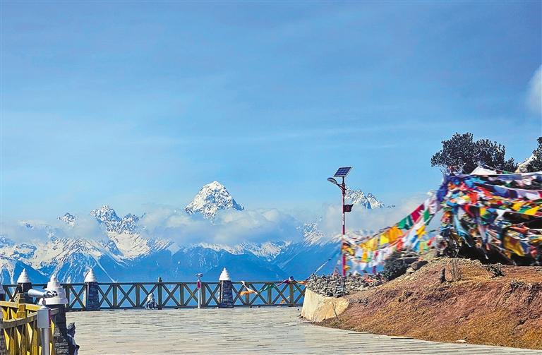 圖為在紅拉山觀景臺(tái)拍攝的達(dá)美擁雪山美景。記者 平措郎加 歐珠次仁 攝
